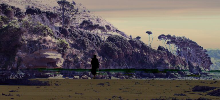 Image: Untitled, 2023, walking on tommeginne Country lutruwita, through layers of time and memory, place and imagination, Jody Haines.