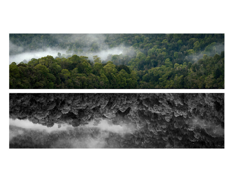 These landscape photographs of Victoria’s Central Highlands and Tasmania capture the delicate interplay between reality and reflection, inviting viewers to ponder the depths of perception and the layers of meaning that lie beneath the surface. The landscape is looking back, like an echo reverberating through time and space, reminding us that we are part of nature and that our impact is potentially profound.