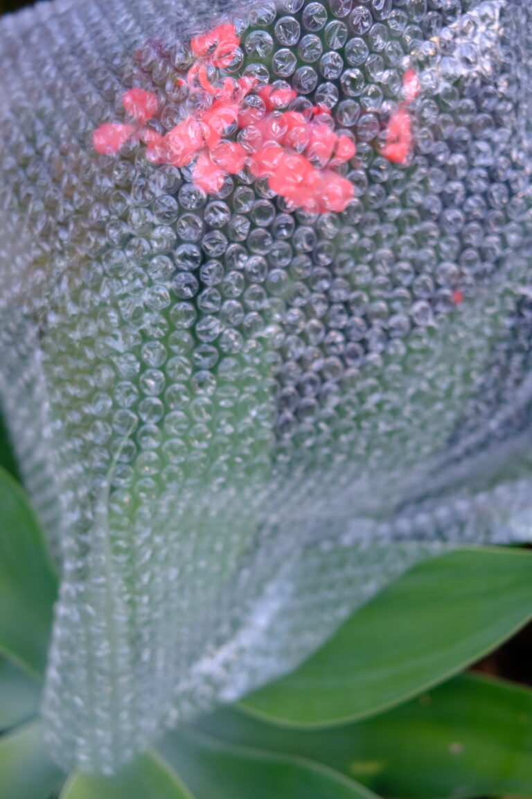 In this series, I wrap fresh flowers in bubble wrap—a gesture of care, an instinct to protect what I cherish. The work explores the tension between preservation and interference, asking whether our desire to hold onto beauty and life is a form of love or control. Flowers are fleeting; bubble wrap offers a false promise of permanence. Through this abstract act, I reflect on the fragility of what we treasure and question whether the things we love truly need saving—or if the need is ours alone.